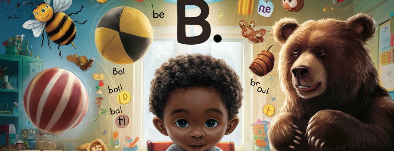 B - "Let's learn the 'b' sound, as in 'ball,' where it begins our phonic journey."
